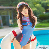 - A superior quality, fully lined, D.Va Overwatch gamer style one piece swim suit with built in bra liner! Fantastic, durable, stretchy swimmer material with vibrant colors!