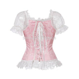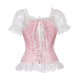 - Strong silk ribbon laced up the entire backside is kawaii and eye-catching! With aesthetic corseting across the front.