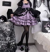- Pastel Goth Aesthetic: The soft lavender tones against the deep black fabric make this dress ideal for those who love kawaii and pastel goth looks.