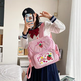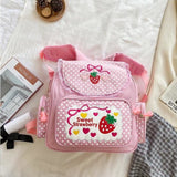 - This deliciously sweet strawberry inspired backpack is made of the highest quality materials featuring hand-embroidery, adjustable straps, and an assortment of convenient pockets!