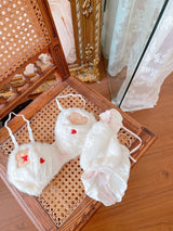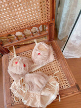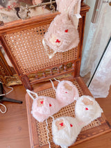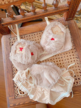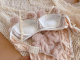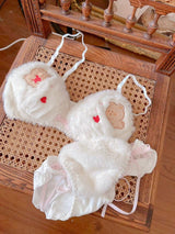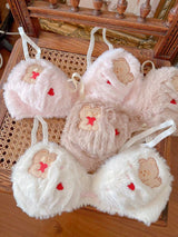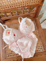 - Featuring a hand embroidered kawaii heart and bear silhouette on the cups, and ultra plush fuzzy fabric on both the bralette AND the matching panties!